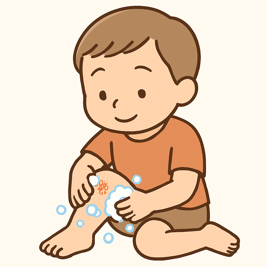 軽度のすり傷や、夜間や休日ですぐの受診が難しい場合は、おうちで以下のように処置をしましょう。